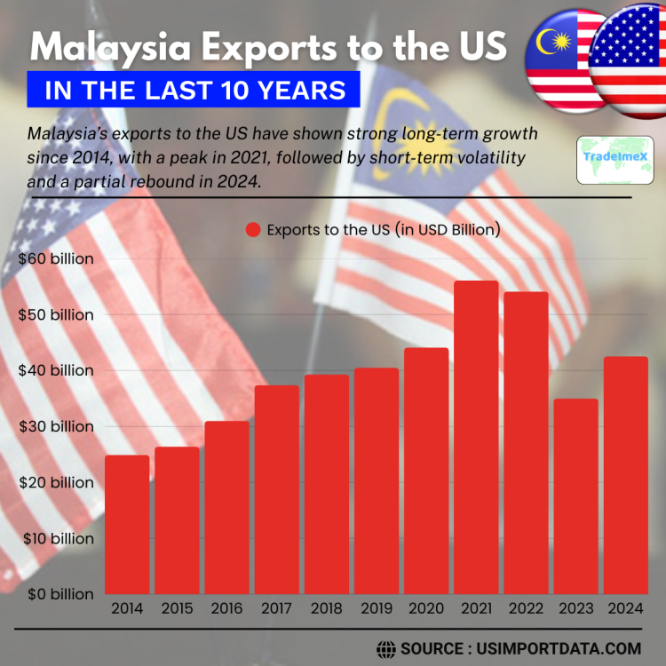 Malaysia exports to the US reached $43.51 billion in 2024, up 12% from 2023. Explore Malaysia–US trade data worth $80.2 billion and find what Malaysia exports to the USA.