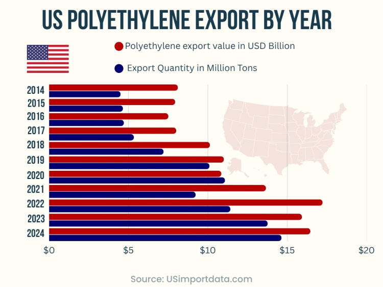 The USA is the biggest polyethylene exporter and supplier in the world.