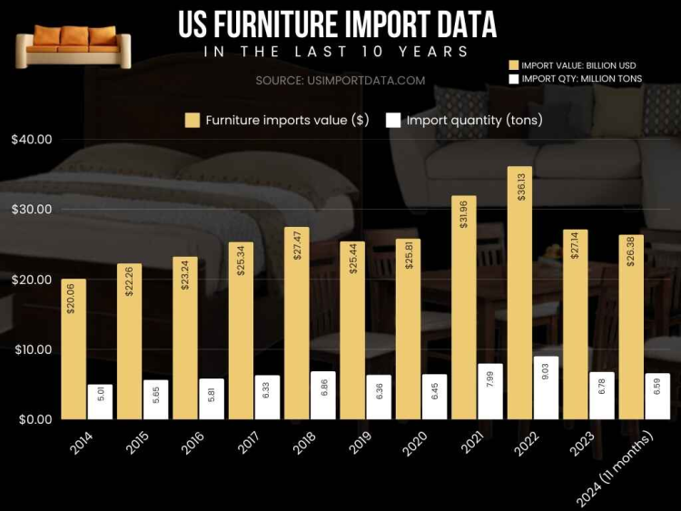 Explore US furniture import data, top furniture importers & buyers in USA, and market insights. Know 2024-25 industry trends, volumes & key import statistics.